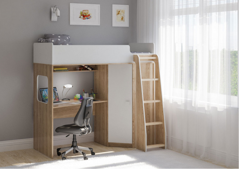 Учебная зона со столом под спальным местом открывает возможности для письменных работ,а также здесь удобно расположить ноутбук.